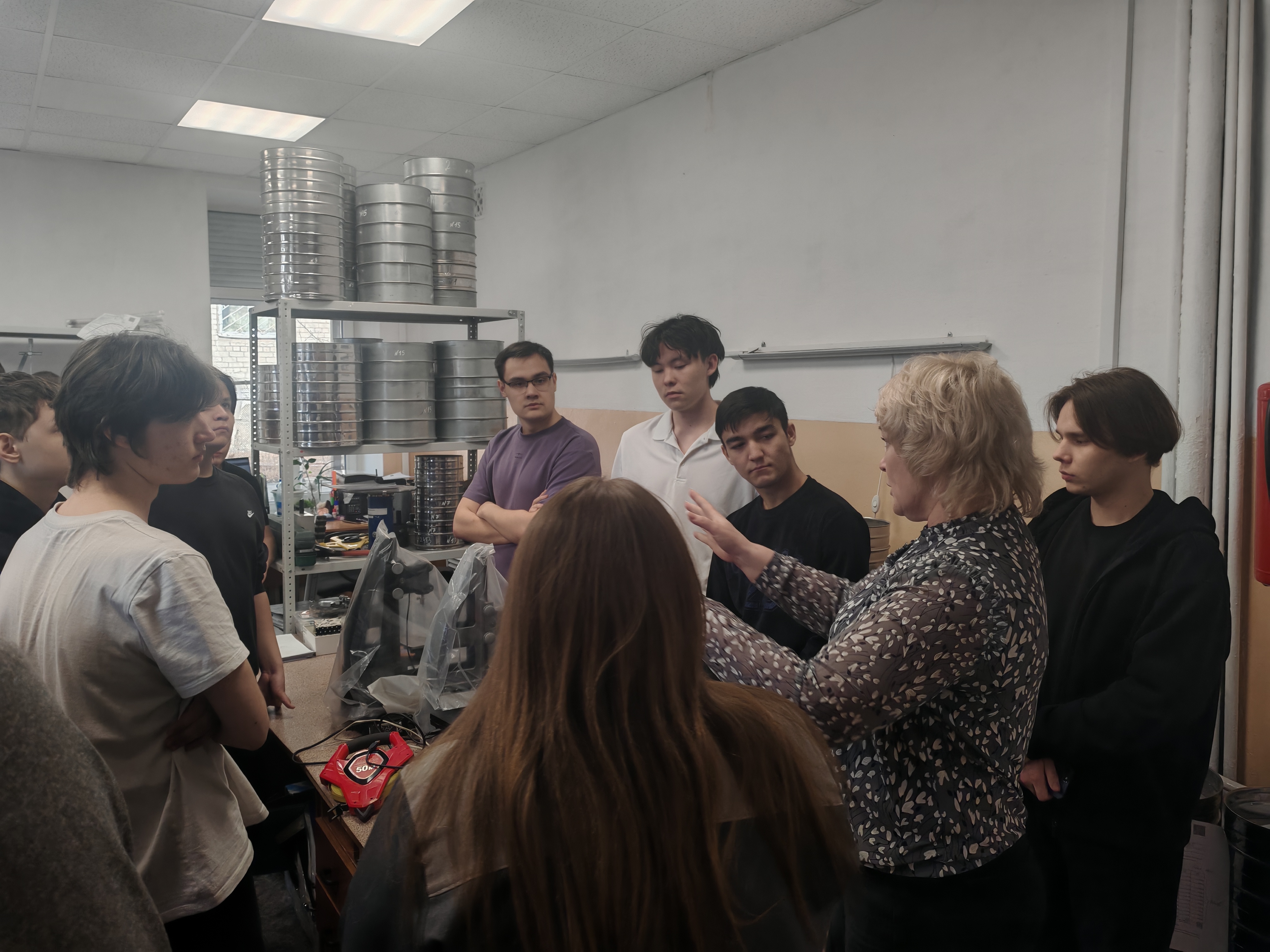 Студенты провели практические замеры с использованием рулеток, штангенциркуля и дальномера, узнали о принципе работы и особенности применения курвиметра.